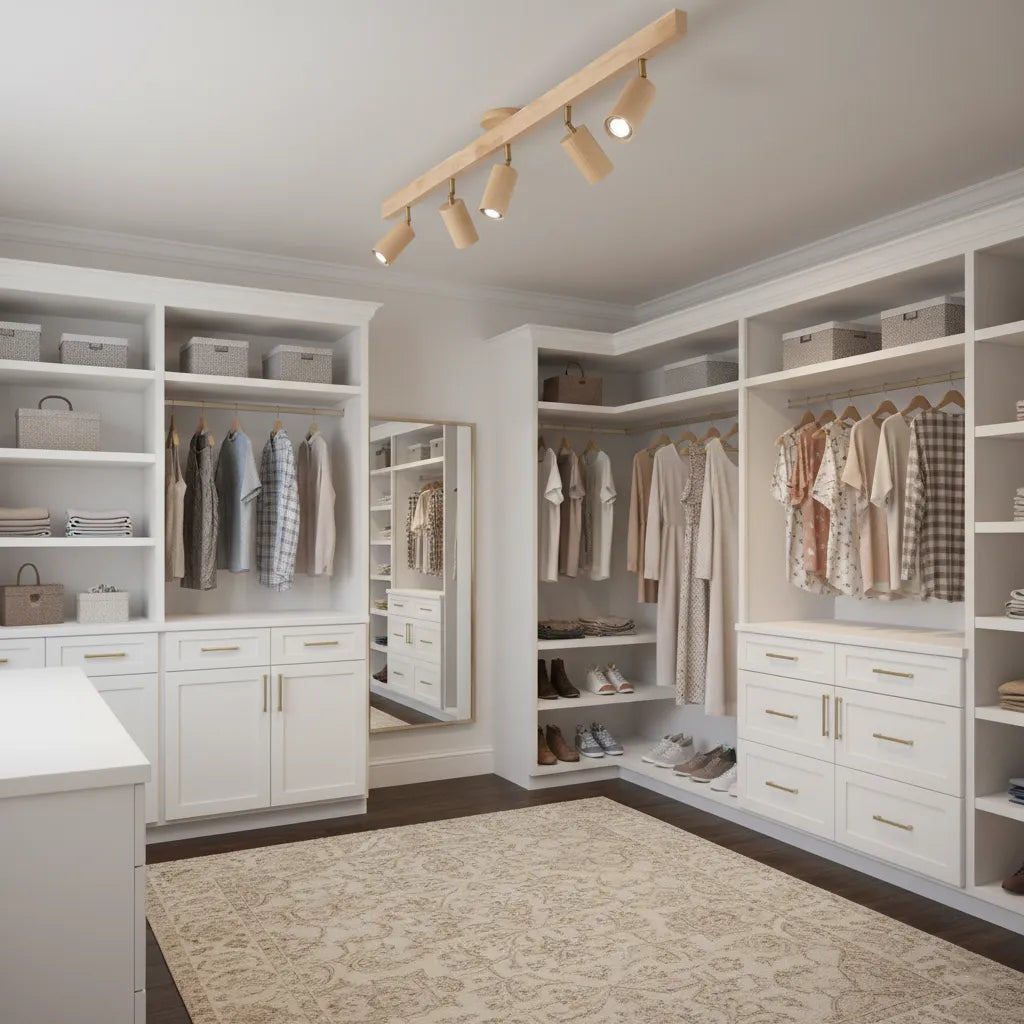 Bringing a touch of nature indoors, this track light combines natural wood finishes with contemporary lighting technology. The wooden shades offer a warm, inviting glow, making it ideal for cozy living spaces or rustic-themed interiors.